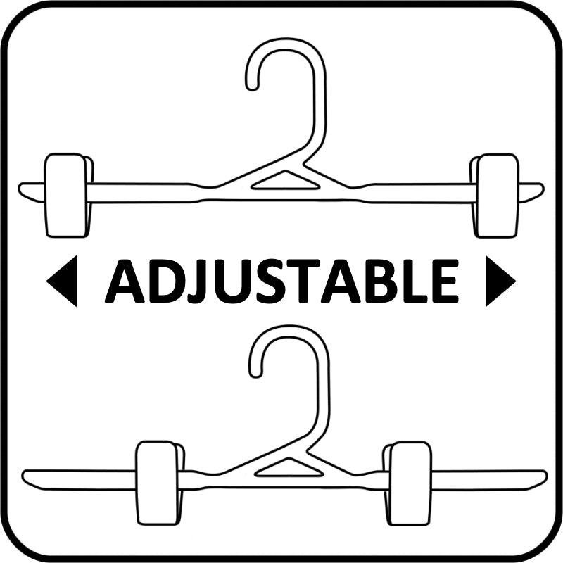 Plastic clip hangers with adjustable width for hanging trousers, shorts, skirts and clothing items that you can't hang on a regular clothing hanger like strapless dresses for instance. These plastic clip hangers have adjustable clips to fit any type of clothing in your wardrobe.