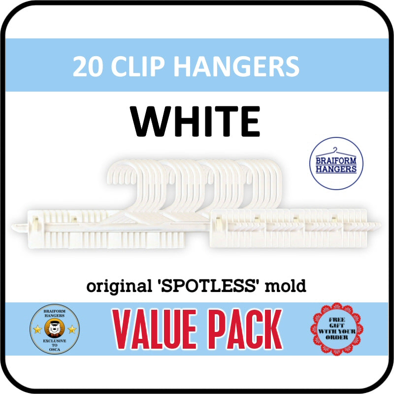 BRAIFORM AUSTRALIA PLASTIC CLIP HANGERS D36 - WHITE